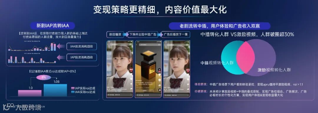 作为站在短剧 “巨人肩膀” 上成长的新业态,漫剧在转化链路与模式上快速突破摸索期,展现出强劲的变现潜力。目前,漫剧在投广测阶段已覆盖广告流量、自然流量、内容营销流量等更广泛的流量池,并通过抖音小程序与抖音端原生等多链路协同,实现内容变现效率的最大化。同时,IAP(应用内购买)与 IAA(广告变现)相结合的多变现模式,能够充分挖掘不同用户习惯背后的变现价值,进一步夯实收益基础。