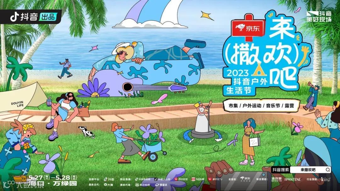 2023年5月,抖音特别策划“来撒欢吧”抖音户外生活节,围绕当下 Z 时代年轻人偏好音乐、市集、户外运动和露营等多元化生活方式,聚焦户外场景,打造丰富、欢乐、专业的户外潮流新风向。