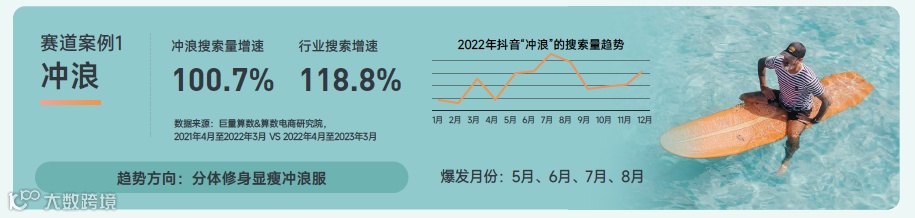 冲浪赛道解读:2022年搜索量同比增长100.7% 。用户以男性为主,集中在北上广一线城市。24-40 岁人群对冲浪潜水更感兴趣。相对来说,对于冲浪潜水用户更注重便捷、排水等功能。未来,随着技术的发展和人们对海洋环境保护意识的增强,冲浪运动将更加注重舒适、安全和环保,并可能推出更具创新性的装备,产生新的活动形式。