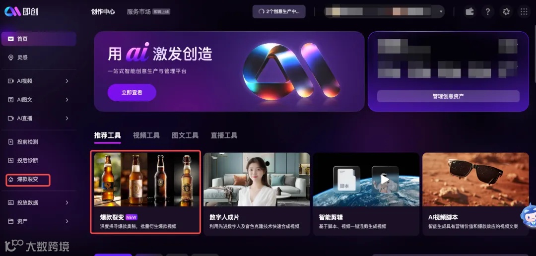 而现在,即创全新上线的「爆款裂变」功能,为广告主二创爆款素材提供了更高效的方法。