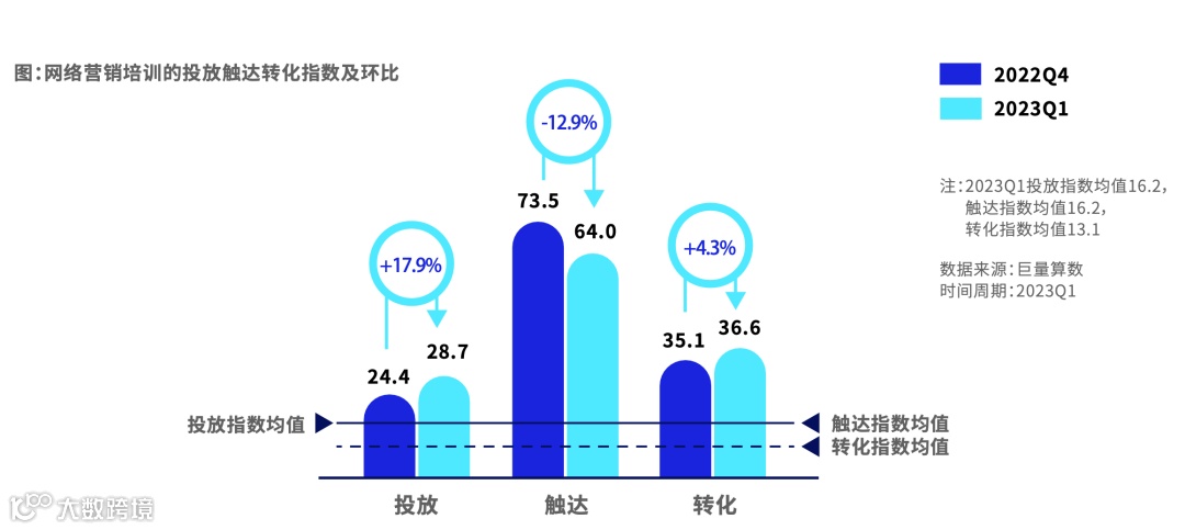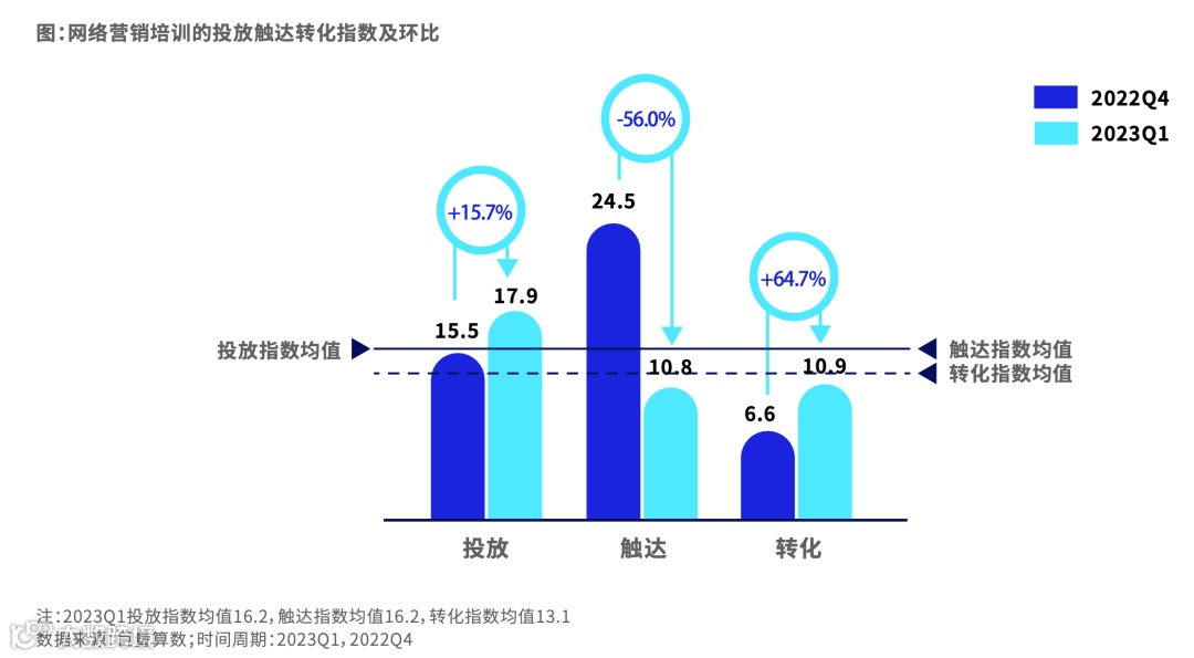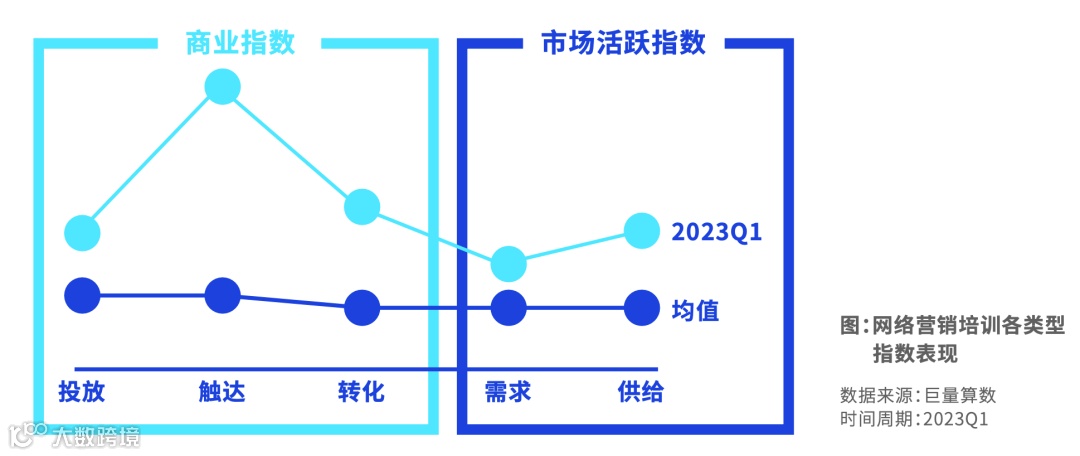 网络营销培训整体商业指数较高,投放指数明显提升。触达指数领先其他品类,用户触达广泛且更加精准。