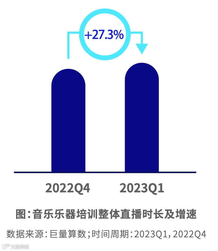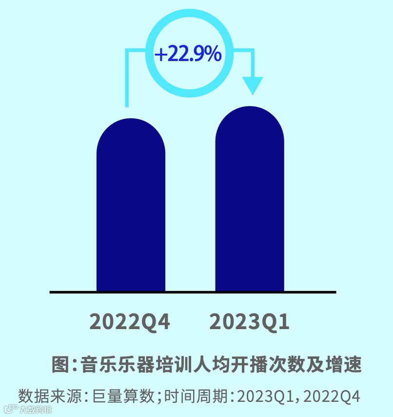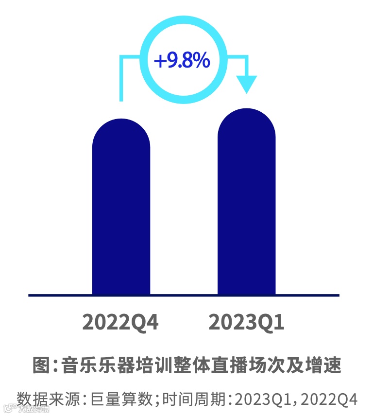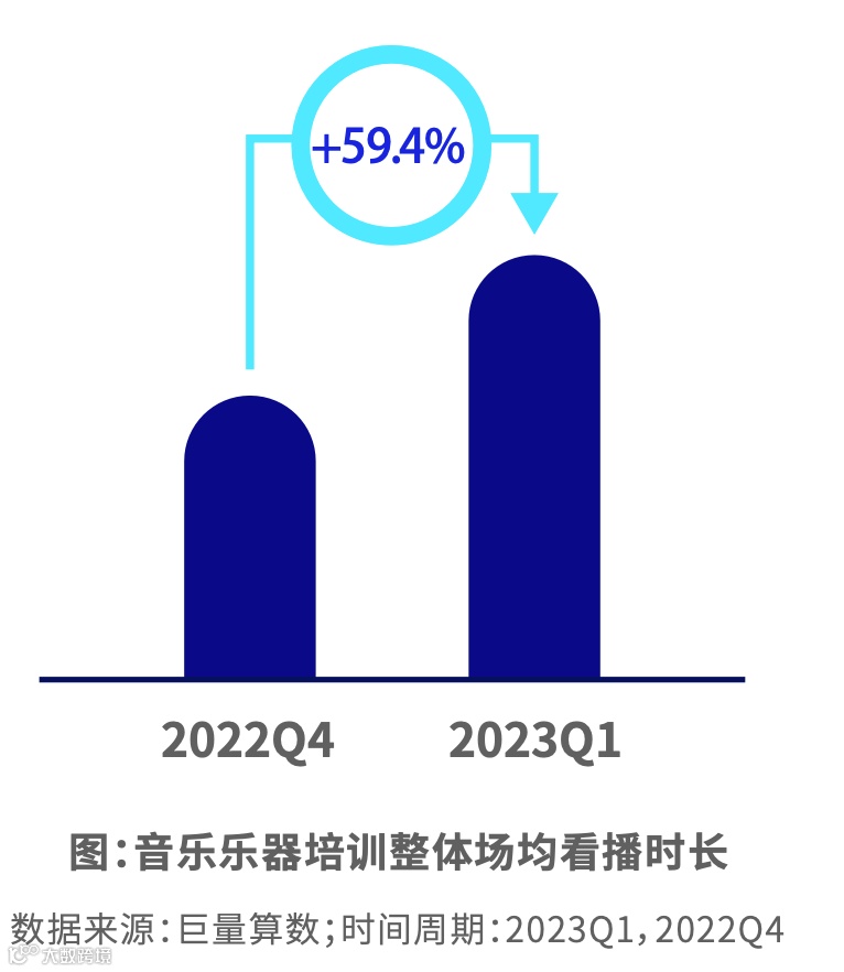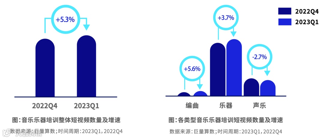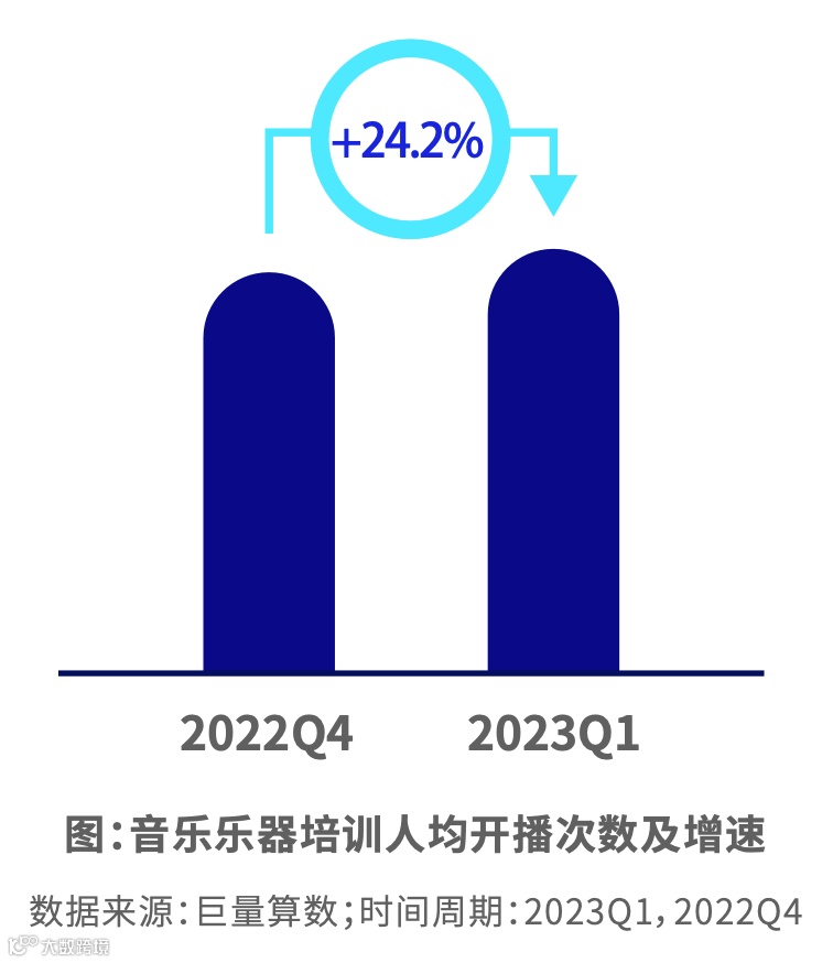 短视频内容平稳增长,主要集中在乐器培训内容。编曲培训内容占比最少但增速最快。主播更频繁开播,直播时间越来越长。