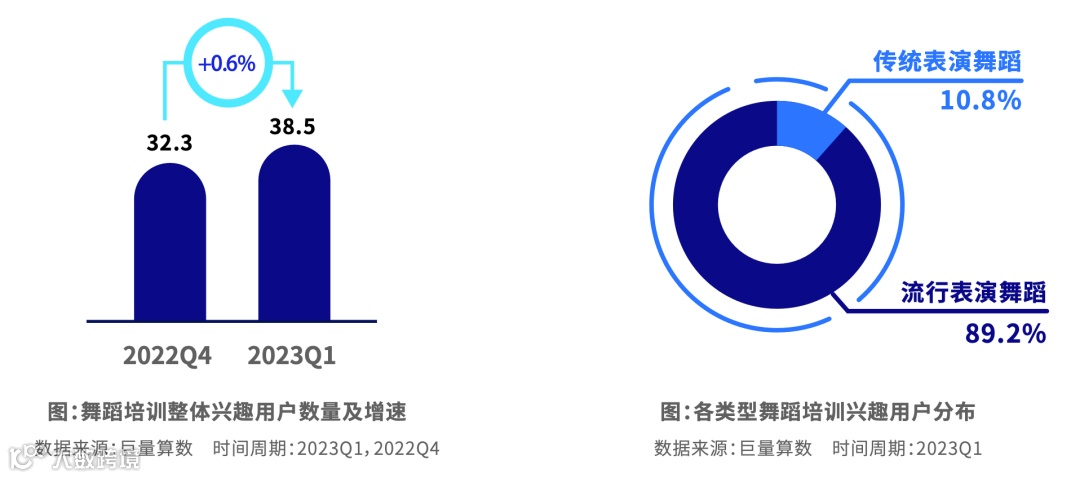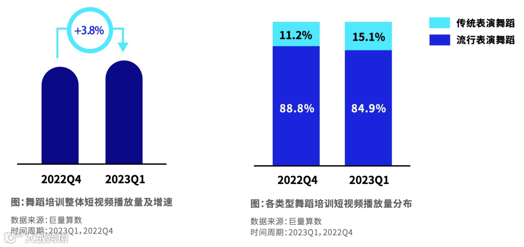 短视频数量快速增长,增速接近12%,主要由传统表演舞蹈带动增长。流行舞蹈是舞蹈培训的主要类型。传统舞蹈主播开播更频繁,流行舞蹈直播时长增长更快。