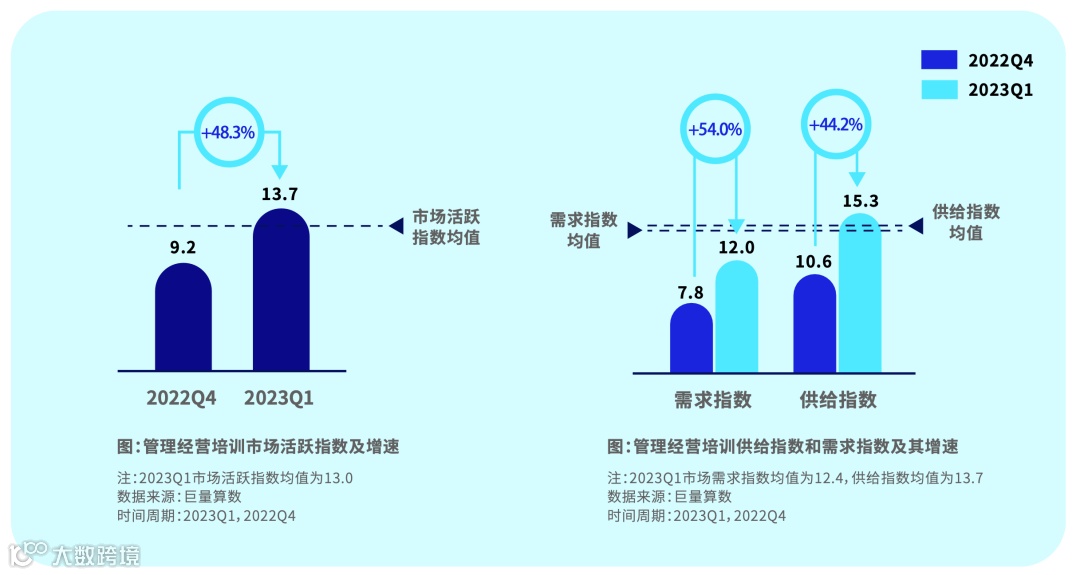 管理经营培训市场活跃指数在本季度高速增长,基本与指数均值持平,内容供需同步增长。