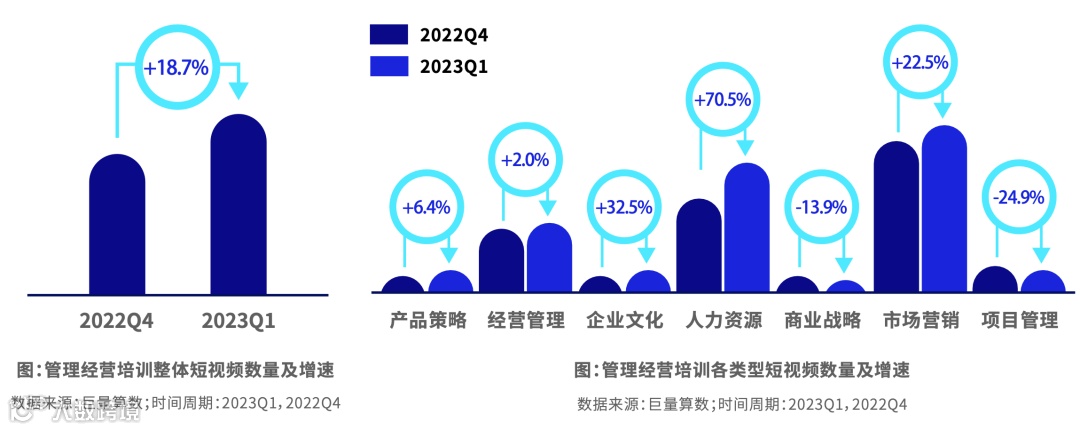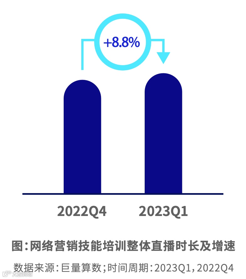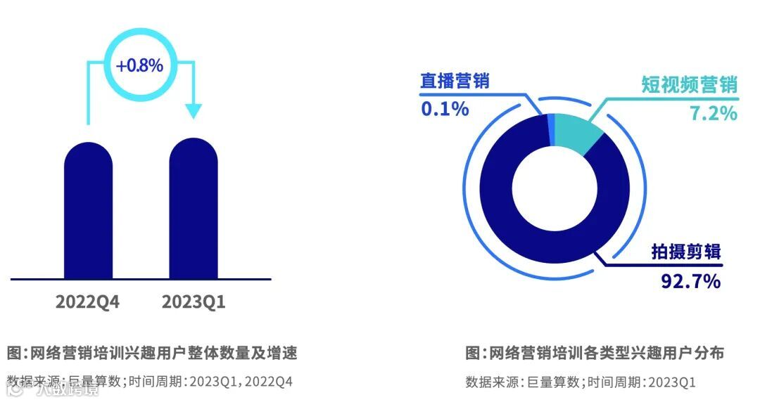 在互联网+快速发展和国家经济产业结构转型的背景下, 一方面,新型行业(短视频,直播电商,信息技术等)快速发展和增长;另一方面,传统行业极探寻转变及焕发第二春(音频等),造成市场就业竞争加剧,对从业人员的职业技能和素养提出更高的要求,从而催生网络营销技能和管理经营培训等职业教育相关课程需求与消费。