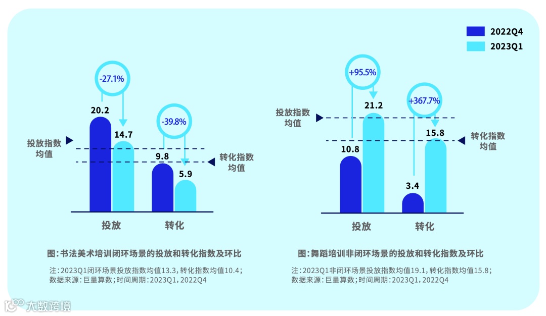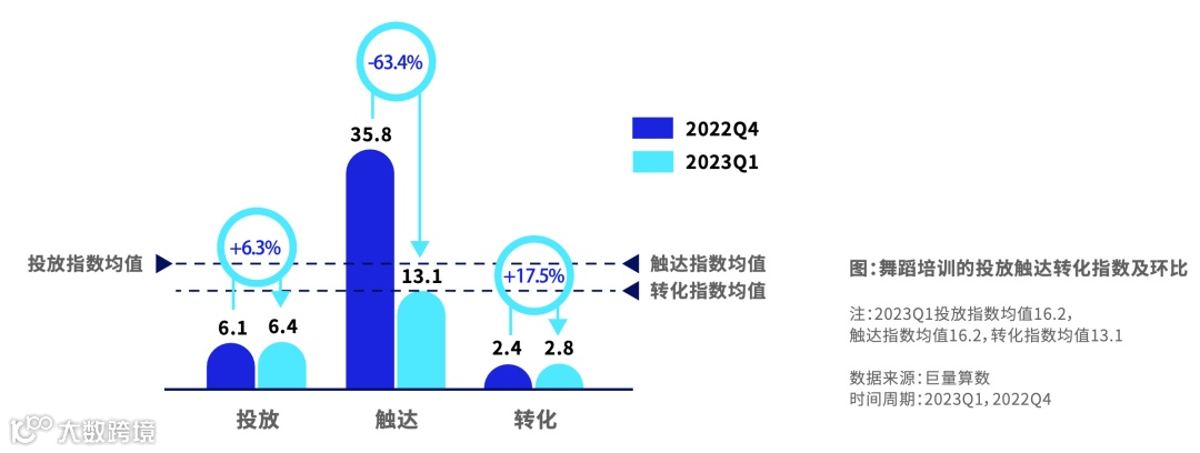 舞蹈培训品类投放和转化指数稳定增长,触达指数较高,转化指数增长较高接近20%,人群触达更加精准。