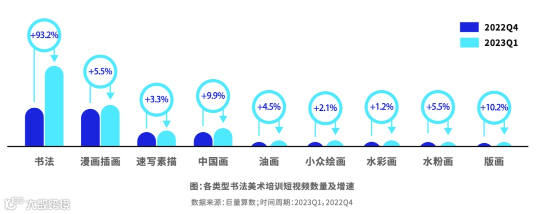 视频数量增速超过10%。其中书法视频数量最多且增速最快,增速接近1倍。