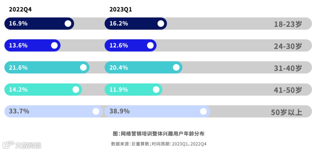 以在线网络营销培训和管理经营培训为代表的职业技能培训,渗透至3-4线城市,更多女性用户和50岁以上群体,为这部分消费者的职业今生、再就业或创业提供了能力储备。商家应抓住职业在线培训的发展趋势,用高质量的视频吸引消费者,提升消费粘性。