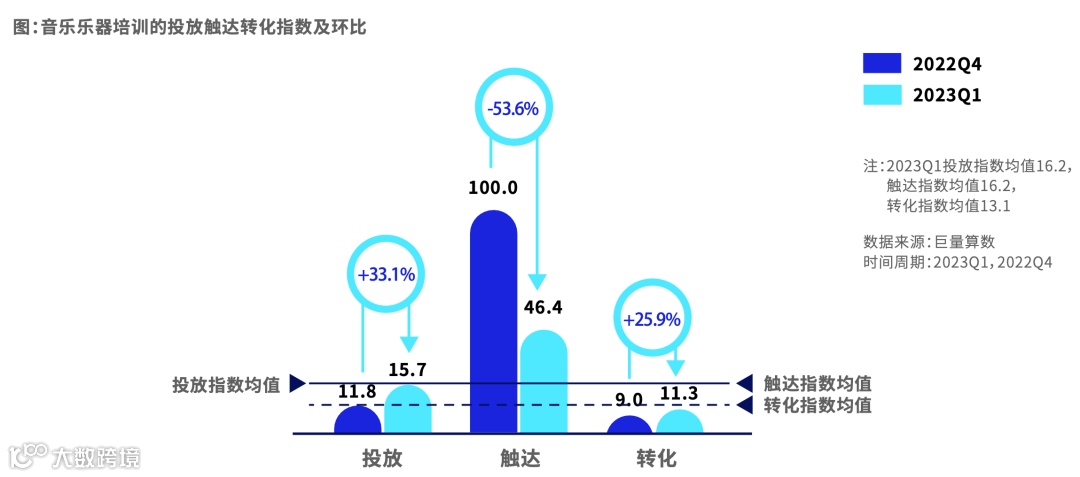 音乐乐器投放指数增速较高,达到33.1%,在触达指数下滑的情况下,转化指数仍然保持超过25%的增长,人群触达更加精准。