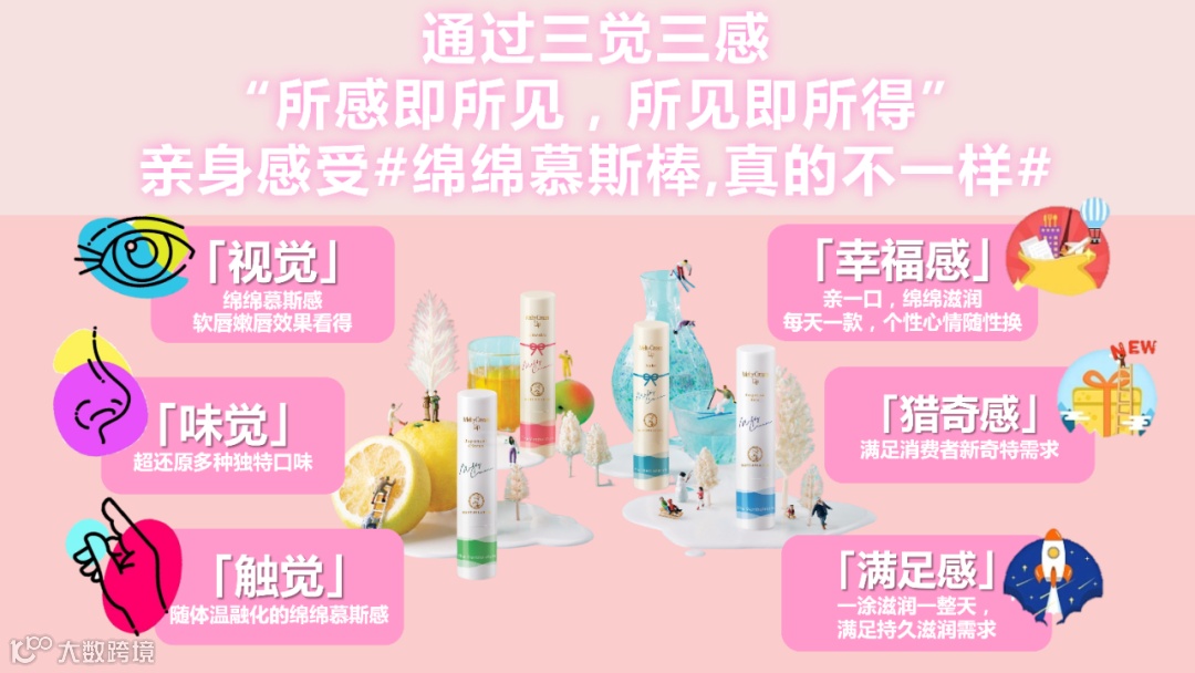 曼秀雷敦绵绵慕斯棒的目标群体是乐于探索自我风格,喜爱尝试新奇事物的Z世代女性。通过对品牌关键词的分析可得出绵绵慕斯棒的重点关键词是“触唇、滋润、柔融”,主要围绕产品的触感、口味、功效三大方面。因此茉杜鹃传媒通过三觉三感——“所感即所见,所见即所得”的种草主题,融入绵绵慕斯棒个性口味多、社交属性强、可盐可甜人设等创意表达,有效植入该系列“独特触感、多种新潮口味、随性格/心情切换”的品牌特点,迅速提升社交平台中的产品热度。