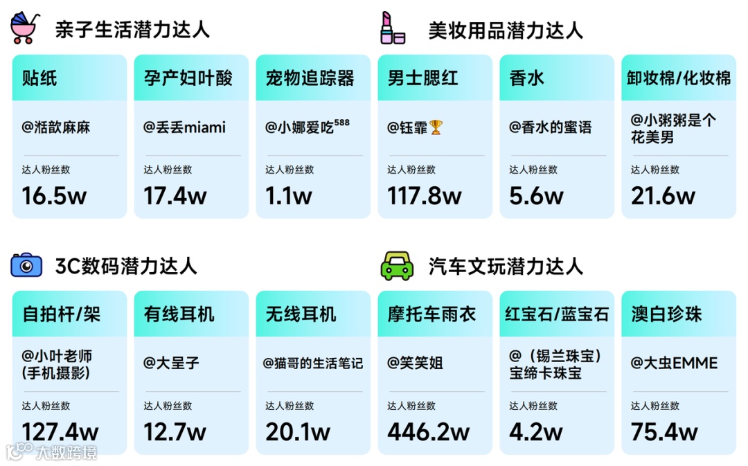 Pick 细分品类潜力达人