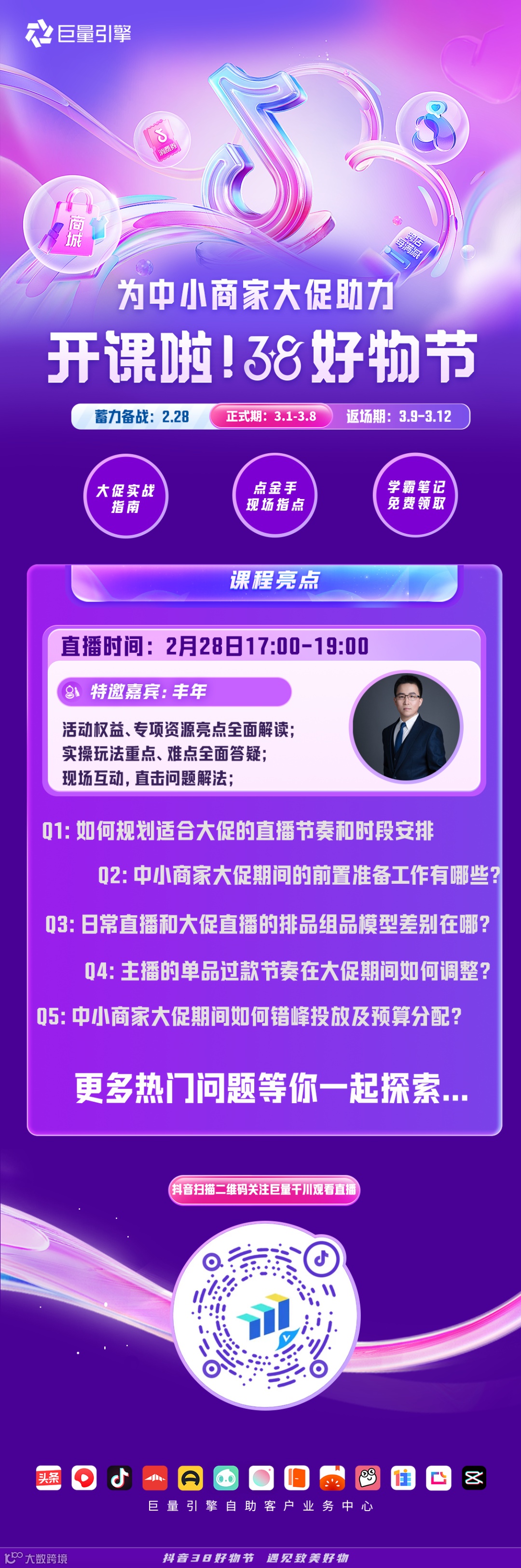 导读:巨量引擎「开课啦!38好物节」明日开播,助力中小商家大促生意“狂飙”