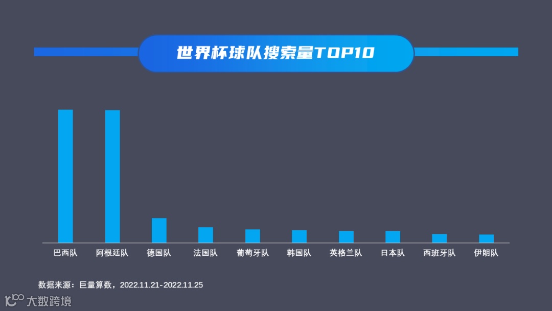 巨量算数数据显示,从球队搜索量来看,巴西高居第一,不仅因为桑巴军团曾是5届世界杯冠军,本届世界杯他们也拥有一支由内马尔、理查利森、卡塞米罗、米利唐、席尔瓦等球星领衔的豪华军团,夺冠呼声也很高。