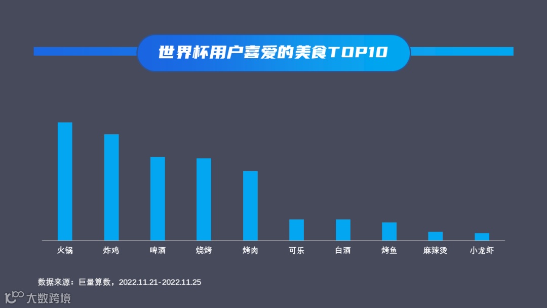 与2018年俄罗斯夏季世界杯不同的是,本届世界杯举办时间在冬季,巨量算数数据显示,火锅、炸鸡、烧烤取代了小龙虾,和啤酒一起,成为了本届世界杯夜宵最受欢迎的食物组合,其中,火锅成冬季观赛“黑马”。