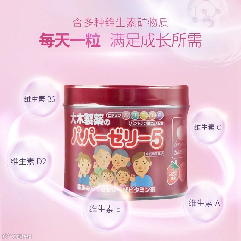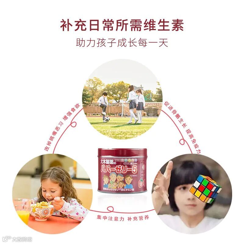 大木制药专注于呵护儿童健康,这款复合维生素软糖拥有5大优势,可均衡营养,助力成长: