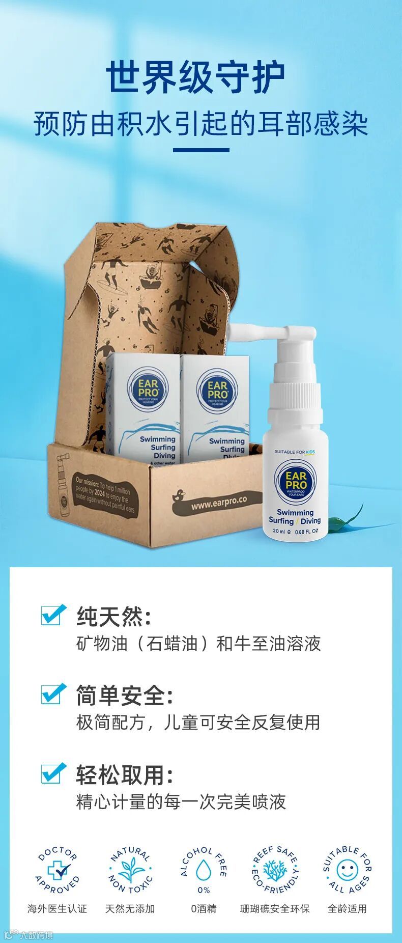 儿童节到来之际,准备一瓶EAR PRO,为孩子免去耳朵进水的烦恼,带去戏水的快乐。