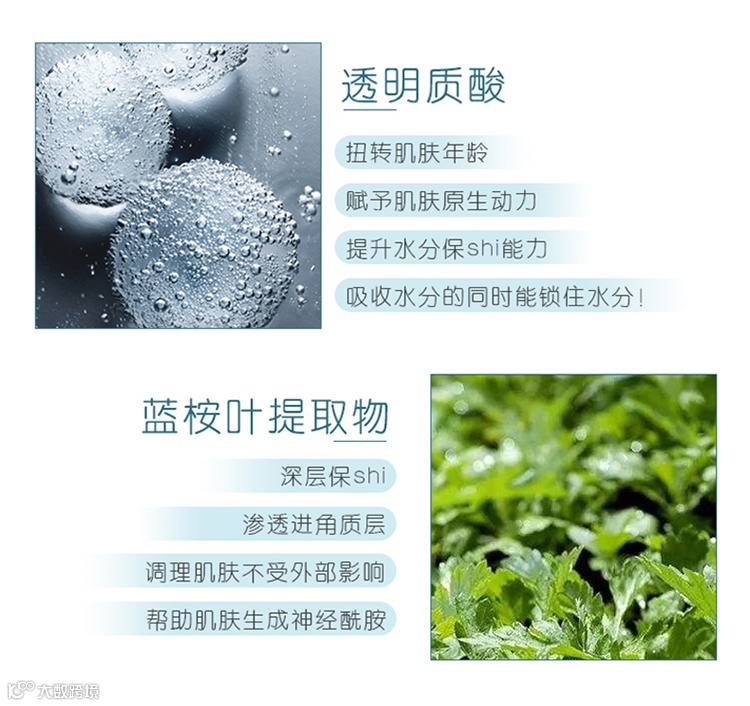 透明质酸、蓝桉叶提取物这两种成分温和滋润保湿、强韧肌肤屏障,有效防止肌肤干燥起皮,适用于所有肤质。