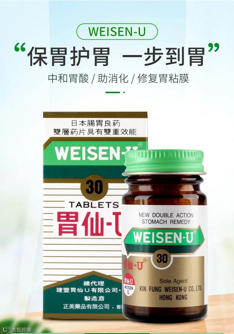 胃仙U于1960年在中国香港问世,至今已畅销60多年。主要作用是中和胃酸、促进消化、修复胃黏膜。