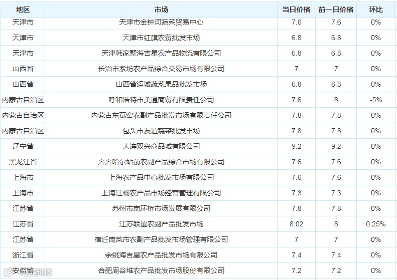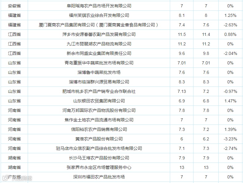 2020年11月24日全国各地鸡蛋批发价格报告(单位:元/公斤)