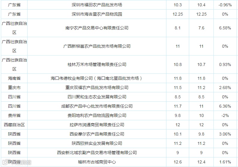 2021年1月20日全国各地鸡蛋价格报告(单位:元/公斤)