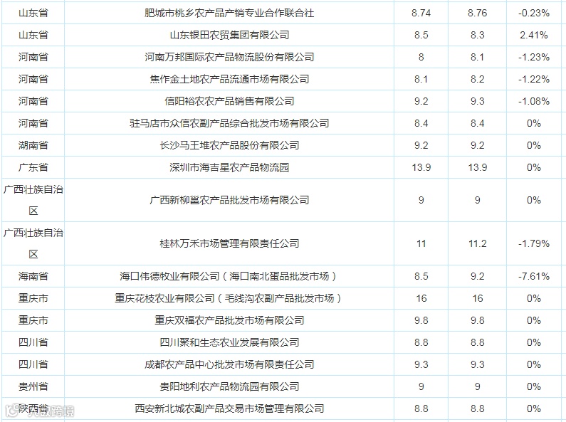 2021年2月14日全国各地鸡蛋批发价格报告(单位:元/公斤)