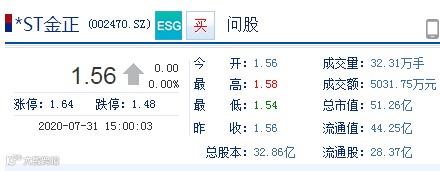 一个月前的6月30日会计师事务所对金正大公布的2019年年报出具非标准意见,当天股票停牌,7月1日复牌后该公司股票交易被实行退市风险警示,股票简称由“金正大”变更为“*ST金正”。