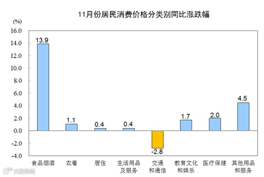 1—11月平均,全国居民消费价格比上年同期上涨2.8%。