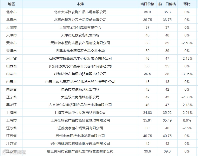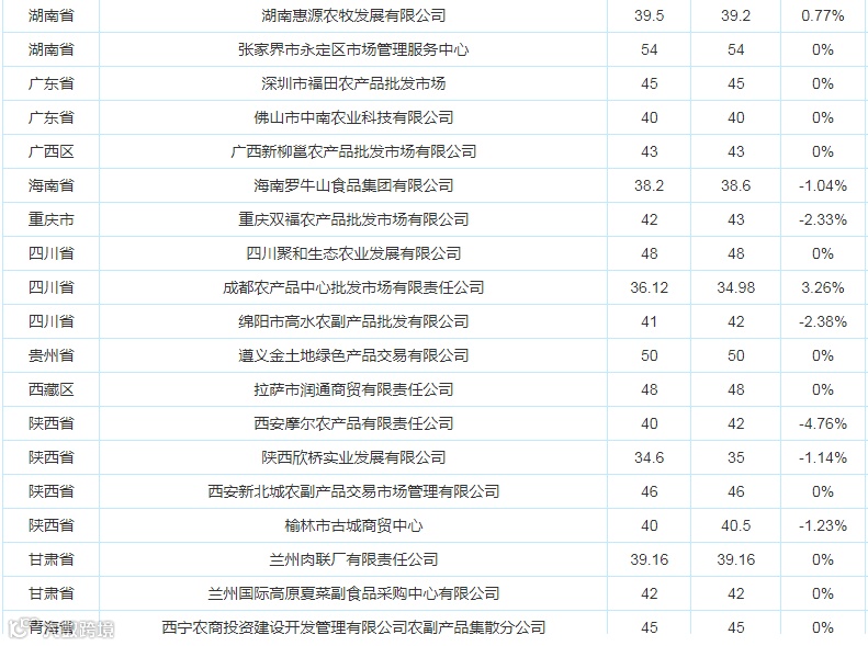看下面这份最新整猪价格表,全国各地不约而同是一片跌声,公斤批发价普遍回到40元以内,北京等地都已在35元左右。