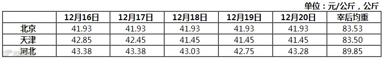 华北三省白条猪平均出厂价变化表