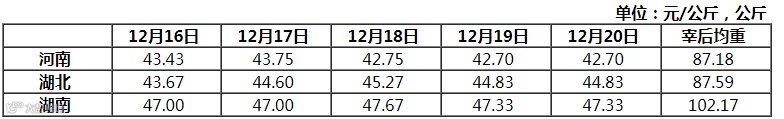 华中三省白条猪平均出厂价变化表