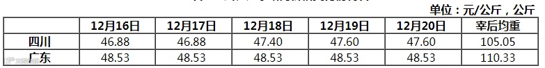 四川广东两省白条猪平均出厂价变化表
