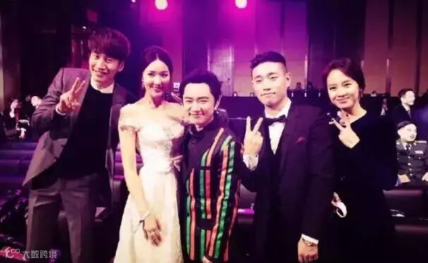 在1月7号晚微博之夜中韩跑男合影,祖蓝明显是没自带小板凳了