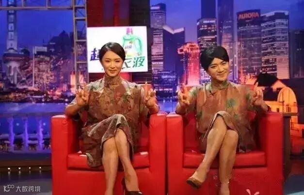 是高个儿的李亚男脱掉高跟鞋、再俯身就着矮个儿的王祖蓝。