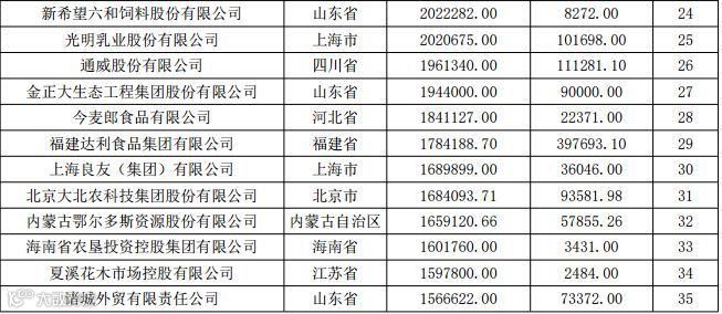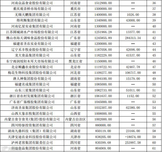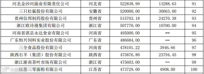 2018农业产业化龙头企业100强排行榜(单位:万元)