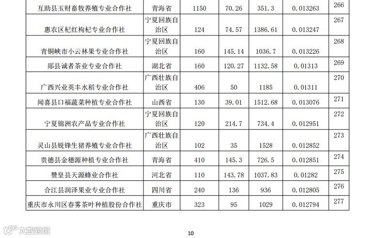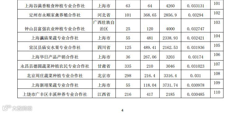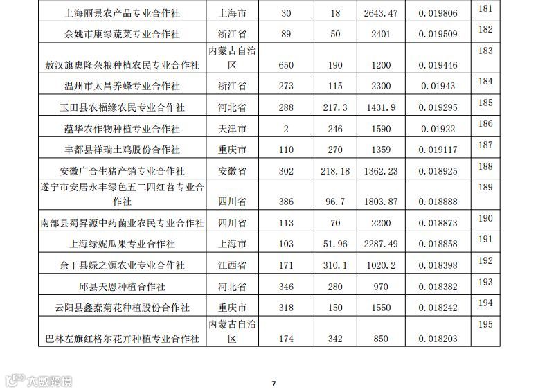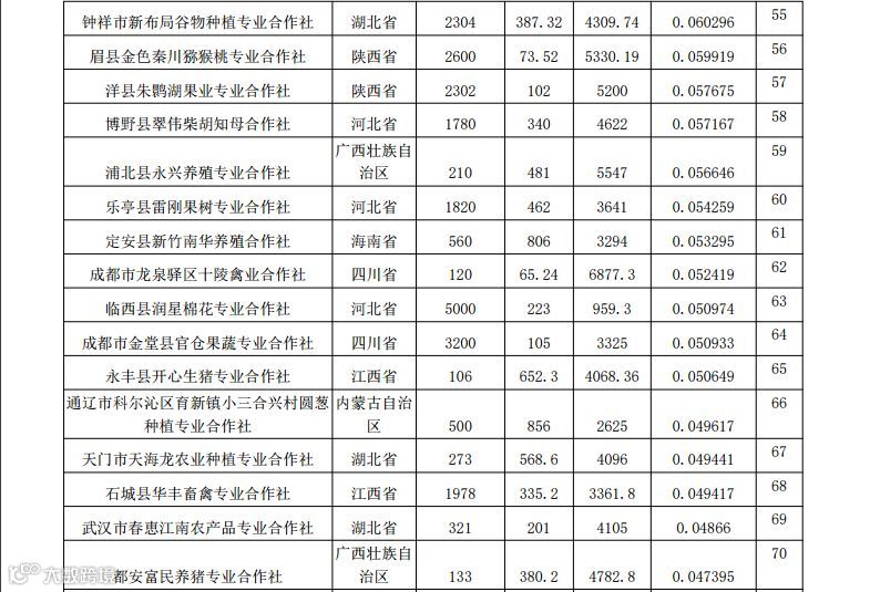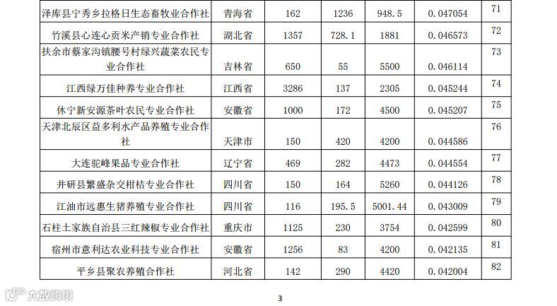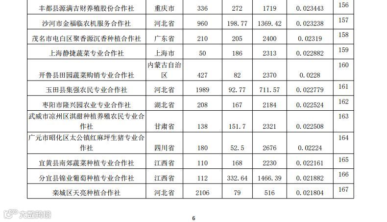此次农民合作社排名主要吸收了2016年营业收入、利润、入社农户数等3个数据,权重分别为60%、30%、10%。