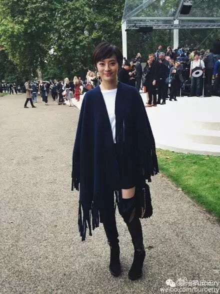 最近还出席了时装周,一身薄荷绿色蕾丝拼裁小礼服出现在Burberry 2016春夏系列女装秀现场。