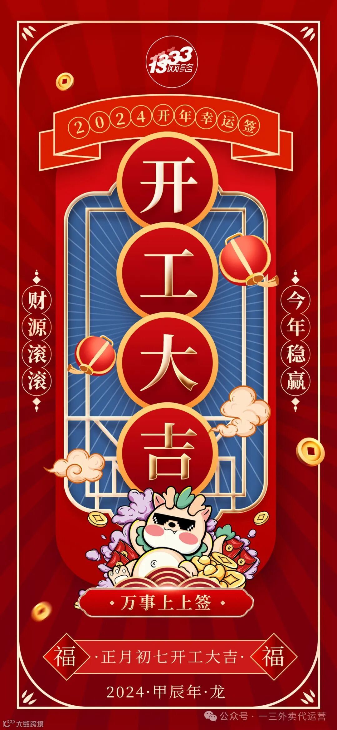 导读:今日开工大吉大利,财神从此不离不弃!祝一三网络财源广进,诸事顺意,诸事大吉,万事上上签!祝各位老板生意兴隆,财源滚滚来!