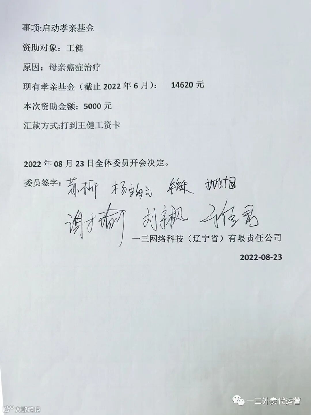 缘起:2020年一三网络科技建立孝亲互助基金,由各部门员工代表组成孝亲互助基金委员会,意在为员工及员工家庭的幸福而努力。