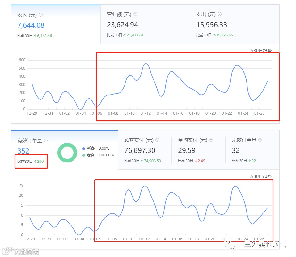 从1月6日上传后,单量在持续上涨,相比前30日,上涨了290单,除了基本的定价和活动以外,装修的统一性给人的视觉感是非常强烈的。这个装修就整体选用了红色调,除了迎接即将到来的春节以外,还考虑到红色带来的视觉感更强,使菜品看起来更有食欲,让顾客更有下单的欲望。