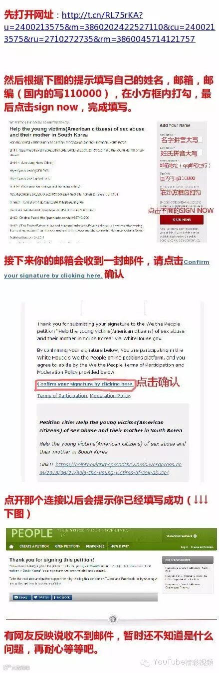 网友@Echooo-- 制作了一张白宫请愿网站的操作图!现在有2.7万签名,在7.24前达到10万白宫才会受理。白宫签名请愿的网址:https://petitions.whitehouse.gov//petition/help-young-victimsamerican-citizens-sex-abuse-and-their-mother-south-korea