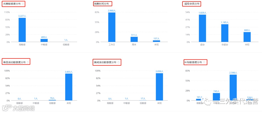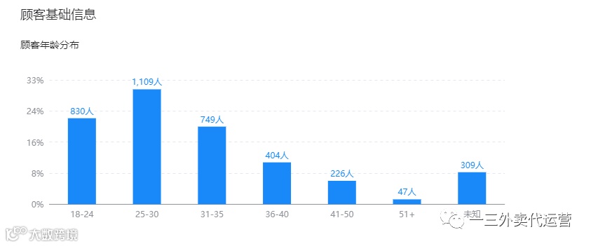 在顾客画像里,还有一个顾客年龄分布,根据年龄不同,顾客的消费能力不同,消费偏好不同,那么你就需要根据你店铺的商圈的年龄占比,来制定你的产品,活动,定价等等,来满足占比最高的人群消费习惯,这样才能符合商圈情况。