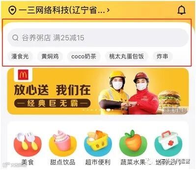 1.搜索推广:在顾客打开美团外卖时,由上往下看首先看到搜索推广。搜索推广位于美团外卖最顶端;