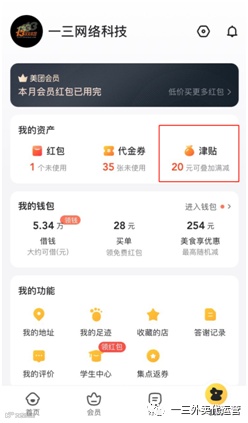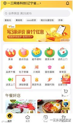 3.津贴联盟:在顾客打开美团外卖时,它的位置就比较尴尬。有两个可以看到,如图: