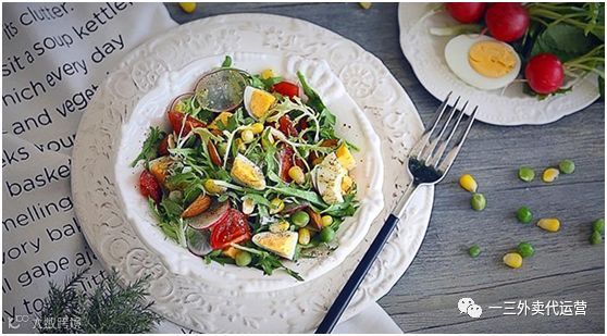 为了让轻食外卖看起来更“轻奢”,就得在包装上下足功夫,外卖包装的色彩、文案、图片要能够吸引顾客眼球。