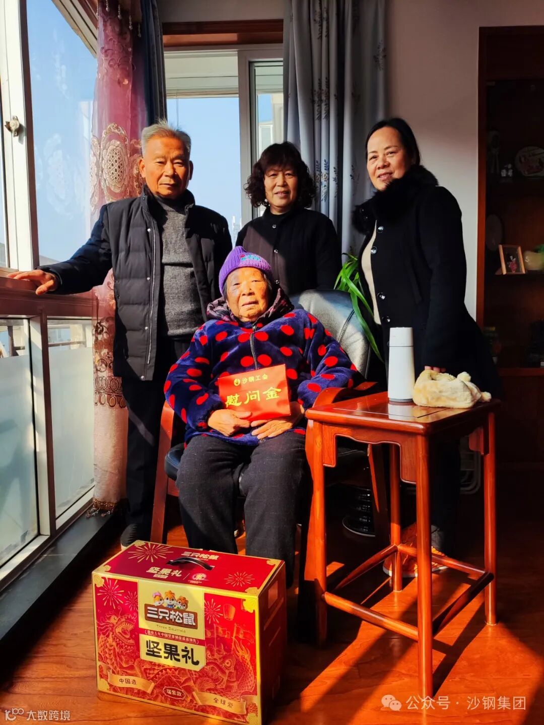 “暖流”还淌进了退休职工的心中。公司工会专门为退休职工准备了新春礼物,有些老职工年事已高,就联系其子女代领或为其提供寄送服务。