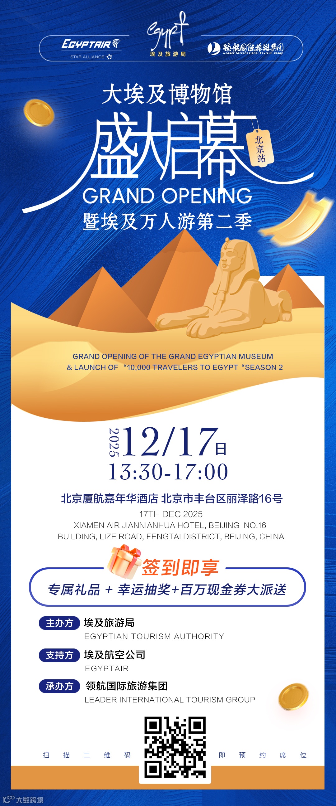 ✅ 限时福利,早鸟先得:现场发布百万代金券,抢先锁定2026埃及旅游黄金席位!