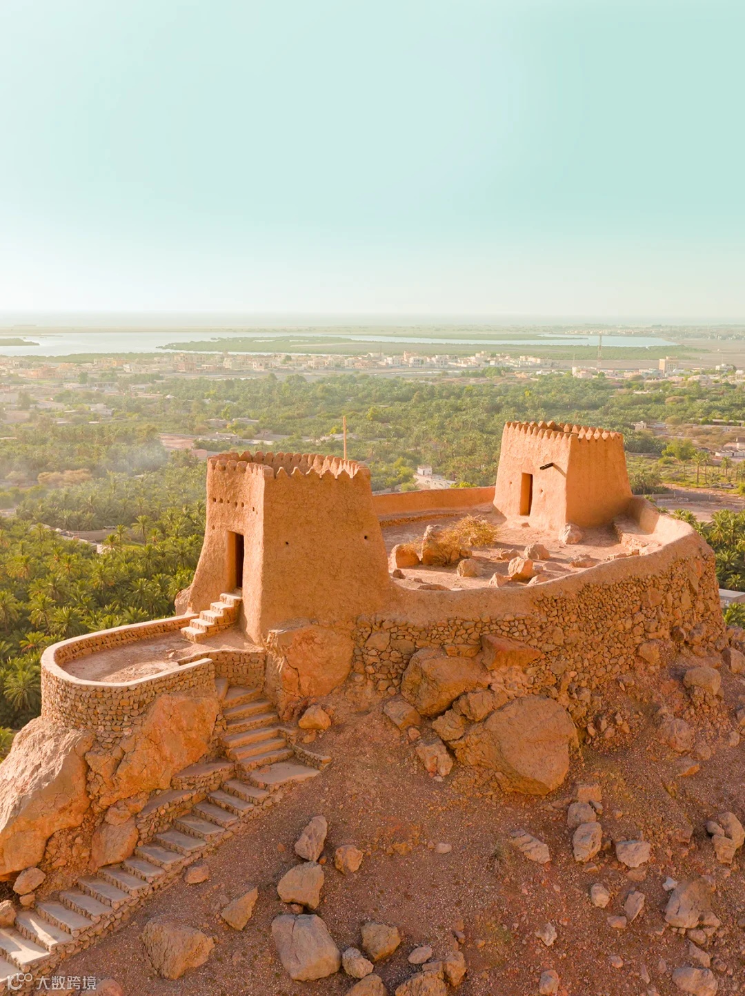站在城堡顶端,波斯湾的海域风光、山脚下成片的椰枣庄园尽收眼底。达雅堡已被列入联合国教科文全球遗产地暂定名单,是拉斯海马遗产保护的典范。