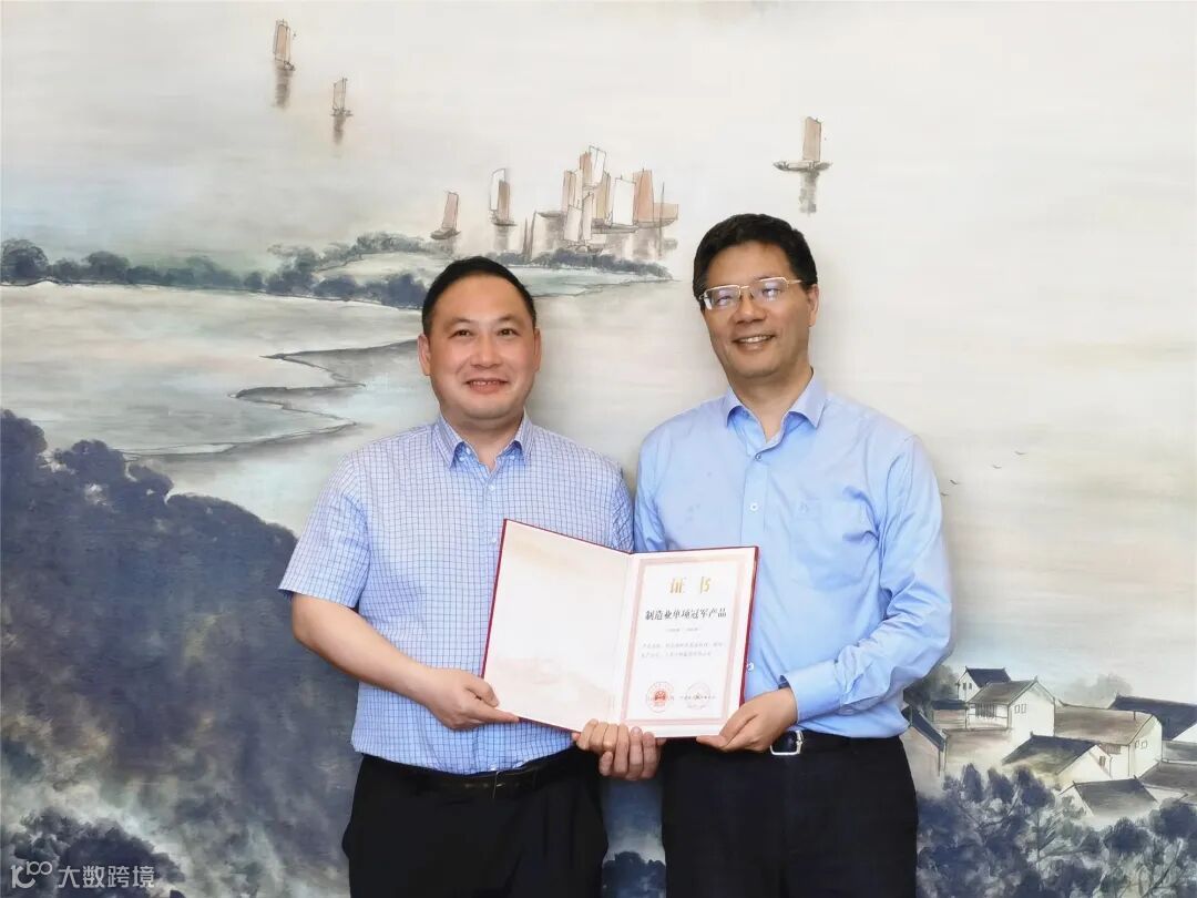 尹涛向沙钢集团有限公司颁发全国制造业单项冠军产品证书。