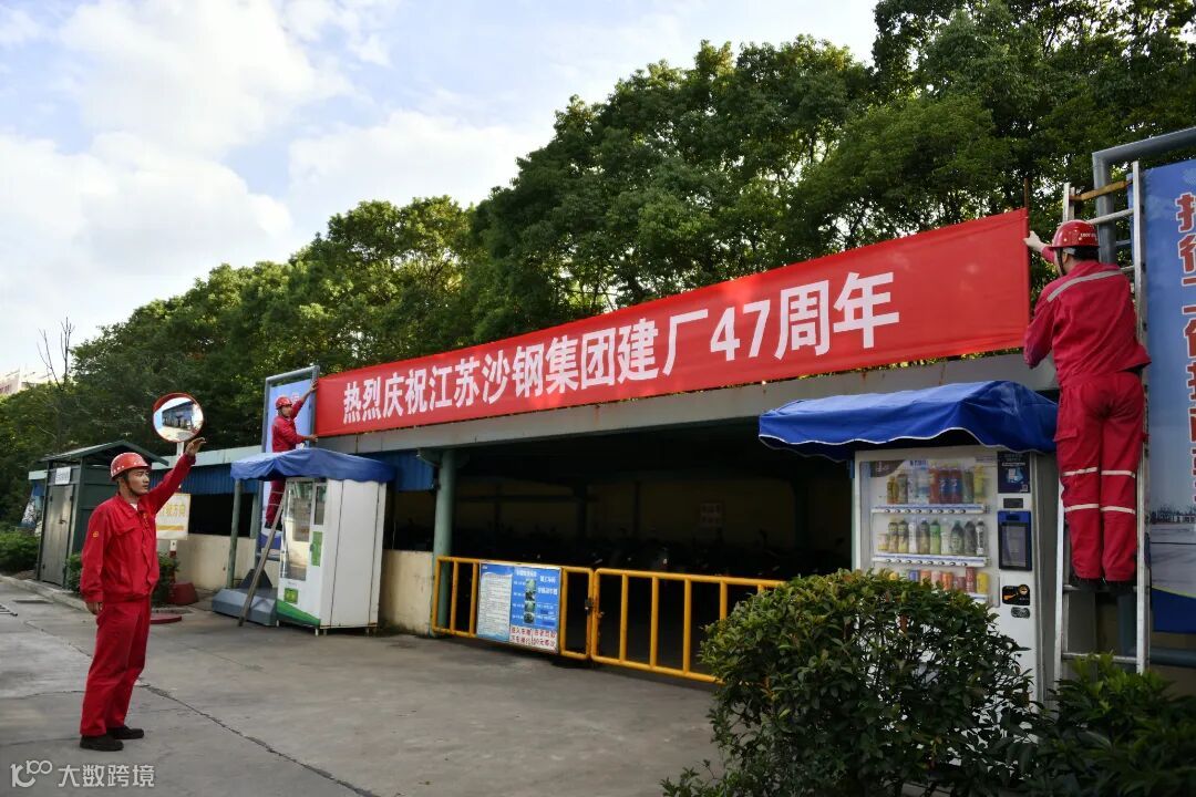 日前,沙钢厂区大门口,一座长近10米、高4米的红旗雕塑格外引人瞩目,过往职工纷纷拿出手机合影留念……
