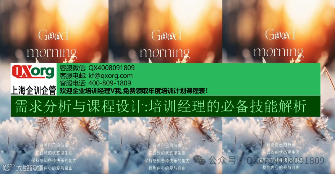 您有任何培训需求,只需轻点左下角的“阅读原文"即可方便地提交您的培训诉求。我们的专业客服团队会在收到您的诉求后的两个工作日内与您取得联系,确保您的需求得到迅速响应.如果您急于寻求帮助,也可直接通过客服微信号:QX4008091809与我们取得联系.